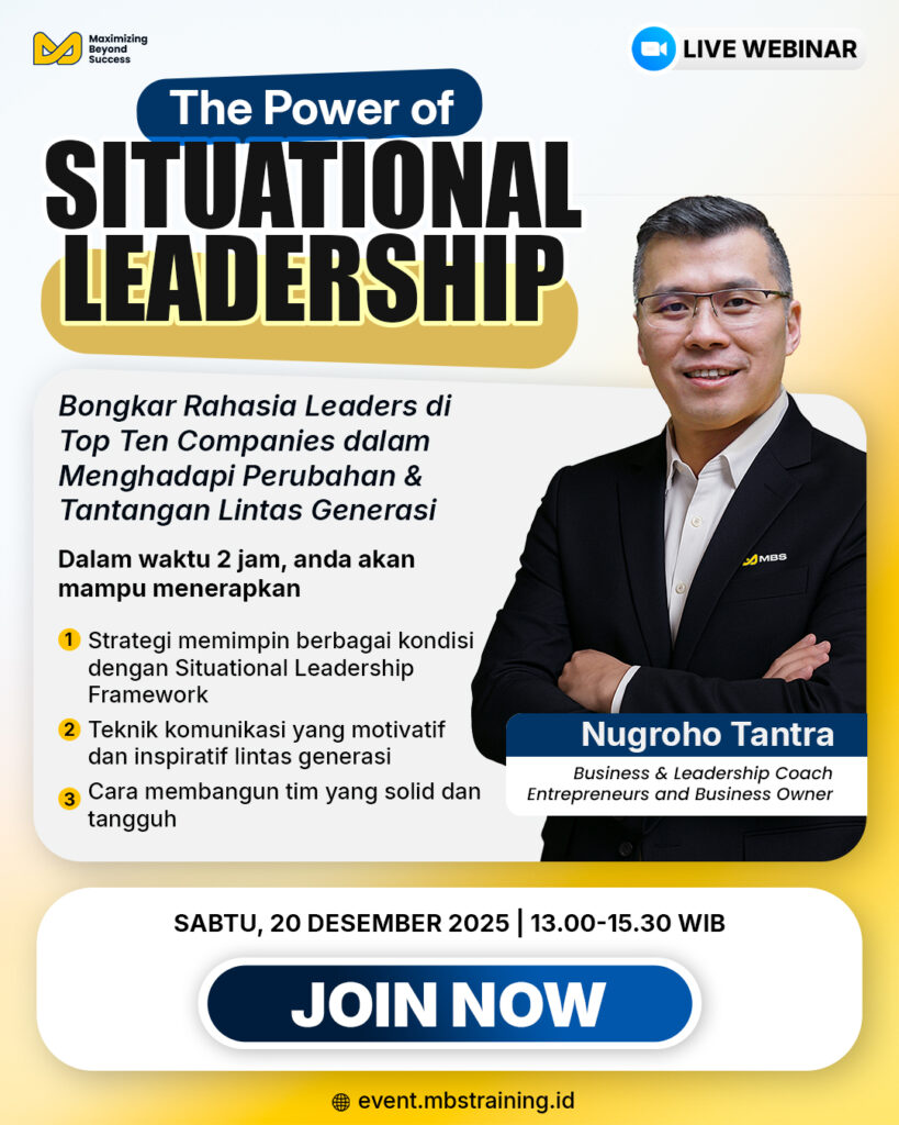Dalam kondisi global yang tidak menentu, Leader dituntut untuk bisa memimpin dalam kondisi dan situasi apapun, demi keberlangsungan Perusahaan dan kehidupan banyak orang. Situational Leadership adalah jawaban dari kunci menjadi sosok Resilient Leader yang tangguh dan adaptif dalam memimpin tim dan perusahaan dalam kondisi terburukpu.
